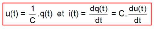 où : q est exprimé en coulomb (C), U en volt (V) et C en Farad (F)