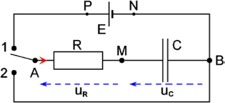 Un dipôle RC est l’association en série d’un conducteur ohmique (conducteur ohmique) de résistance R et d’un condensateur de capacité C, comme dans le schéma ci-dessous :
