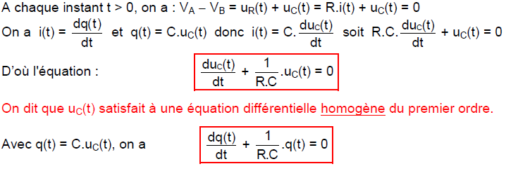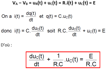 Le produit R.C est homogène à un temps et est appelé constante de temps τ du dipôle RC.