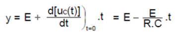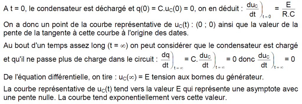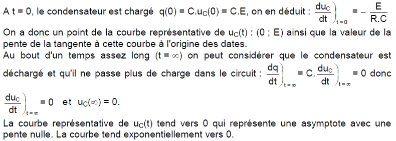 En effet, la tangente à la courbe représentative de uc(t), à t = 0 s, a pour équation :