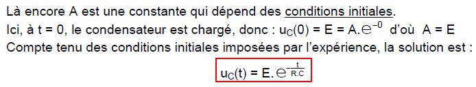 Le condensateur étant chargé, on bascule, à l’instant t=0, l’interrupteur en position 2.