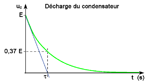 Par lecture graphique de l’abscisse du point de la courbe dont l’ordonnée est égale à 0,37.E, on obtient la valeur de τ.