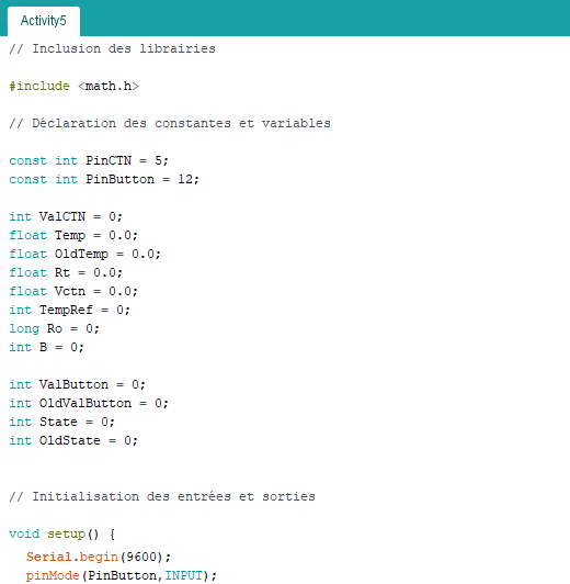 . const int PinCTN = 5 (constante nombre entier correspondant à la broche de la CTN)