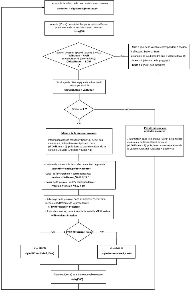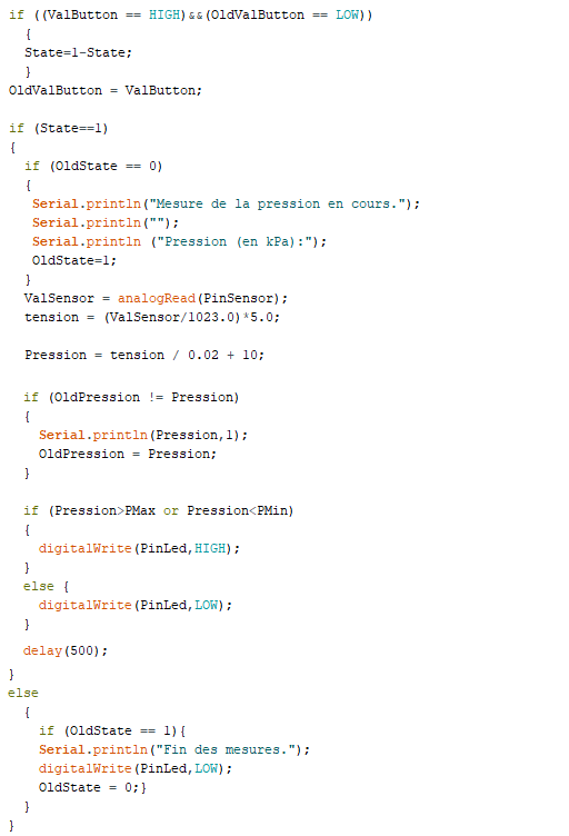 . float OldPression = 0.0 (variable nombre décimal pour stocker le résultat du calcul de la pression précédent)