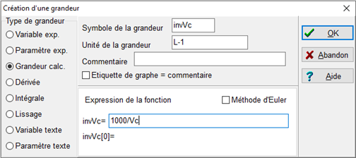 Pour cela, on crée une grandeur, appelée invVc (en L-1), représentant l’inverse de Vc en L :