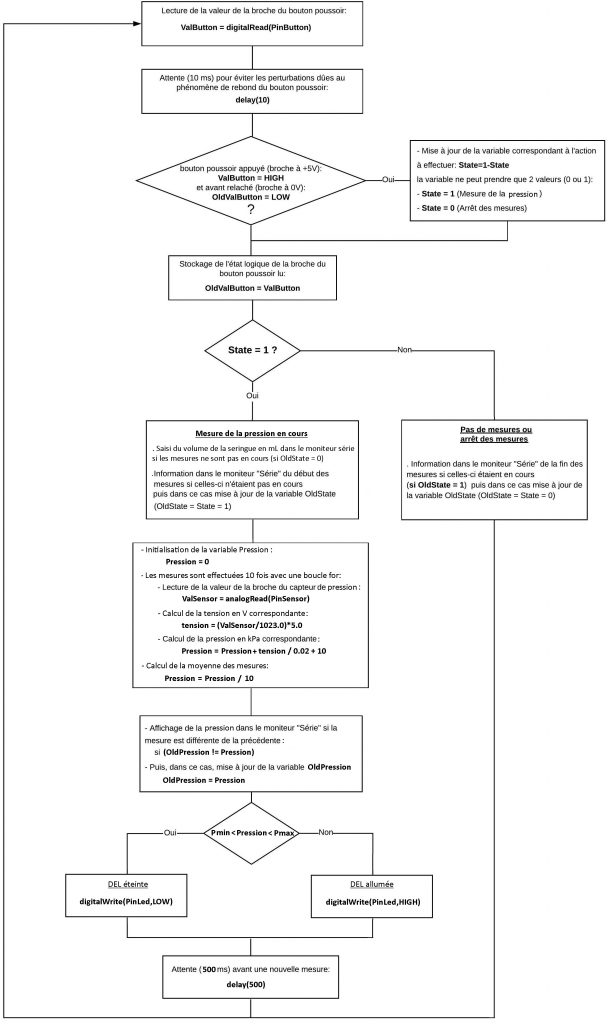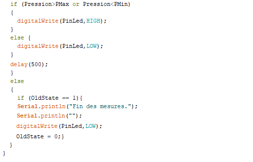 . float OldPression = 0.0 (variable nombre décimal pour stocker le résultat du calcul de la pression précédent)