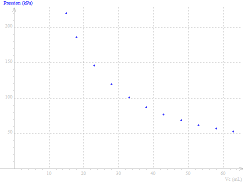 On peut tracer le graphe représentant la pression en fonction du volume corrigé :