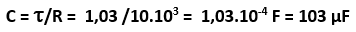 On peut alors déterminer la capacité du condensateur (valeur théorique = 100 μF) :