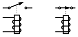 En absence ou en présence de courant circulant dans l’électroaimant, le connecteur COM est en contact avec le connecteur NC ou le connecteur NO.