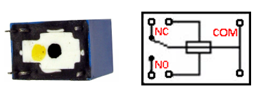 Dans ce type de relais, l’interrupteur est remplacé par un commutateur. Le relais comporte maintenant 5 connecteurs : en plus des deux connecteurs reliés à l’électroaimant, il y a un connecteur « COM » (commun), un connecteur « NC » (normally closed) et un connecteur « NO » (normally open).