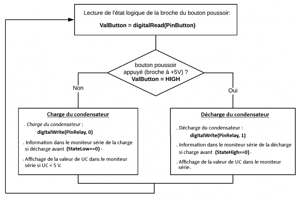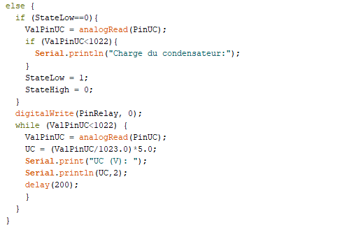 . int ValPinUc = 0 (variable nombre entier pour stocker la valeur de la broche du condensateur)