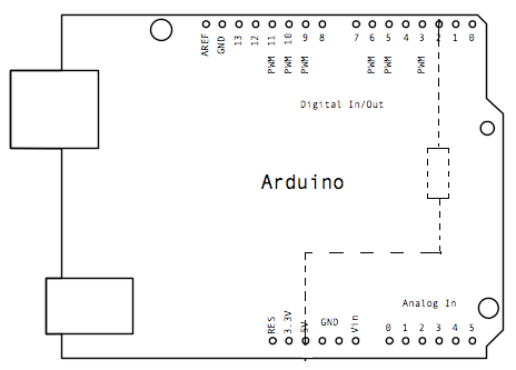 – Ne pas oublier qu’une broche numérique ne peut fournir que 40mA (milliampères) tant en entrée qu’en sortie, et que l’ensemble des broches de la carte Arduino ne peut fournir que 200mA. Par conséquent, limiter l’intensité utilisée pour chaque broche à une dizaine de mA par des résistances adaptées : 220 Ohms pour une LED par exemple.