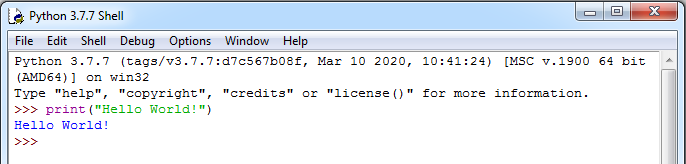 Tapez :  print(″Hello World !″), puis appuyez sur la touche Entrée.