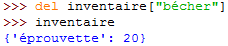 – pour effacer une entrée (clé/valeur), on utilise la fonction del :