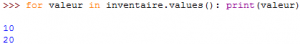 – et avec la méthode values(), on récupère les valeurs :