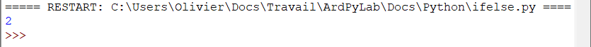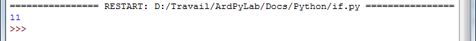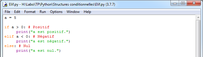 Quand une condition vraie est rencontrée, les instructions associées sont réalisées, puis le programme continue son exécution à la ligne suivant l’ensemble de la construction if/elif.