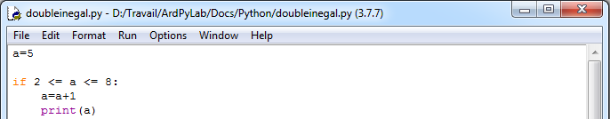Python permet aussi l’enchaînement des comparaisons à l’aide d’une double inégalité.