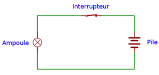 Lorsque l’interrupteur est déclenché, on dit que le circuit est ouvert. Le pôle positif n’étant alors plus relié au pôle négatif, les électrons ne peuvent plus se déplacer.