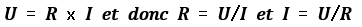 Ainsi, pour une tension fixe, plus la résistance est faible, plus le courant la traversant est fort. Cette proportion est vérifiée par la loi d’Ohm :