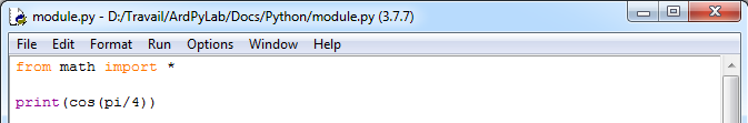 Dans cet exemple, seules les fonctions cos et pi du module math sont importées.