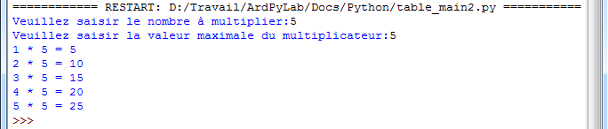 Le dossier fonctions est situé dans le répertoire d’exécution du programme principal qui va importer la fonction table du module table.py et la fonction saisie du module saisie.py :