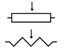 Voici les symboles électroniques (européen dessus et américain dessous) du potentiomètre :