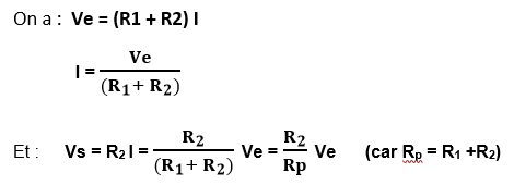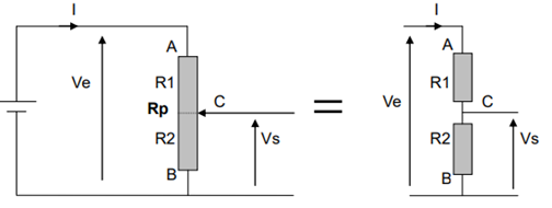 Dans ce montage, le potentiomètre de résistance totale Rp est utilisé en pont diviseur de tension :