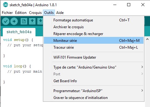 Ou à partir du menu Outils/Moniteur série :