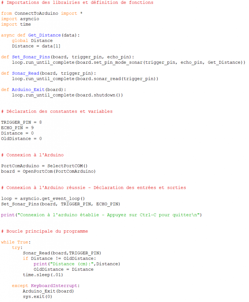 Get_Distance” est une fonction asyncio” pour récupérer la valeur de la distance en cm entre le capteur et un obstacle :