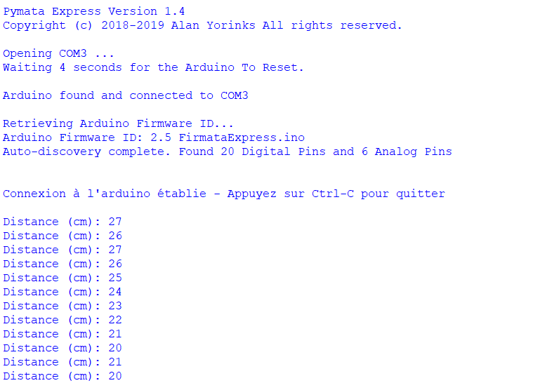 –> Affichage de la distance dans la console Python si la valeur mesurée est différente de la valeur précédente.