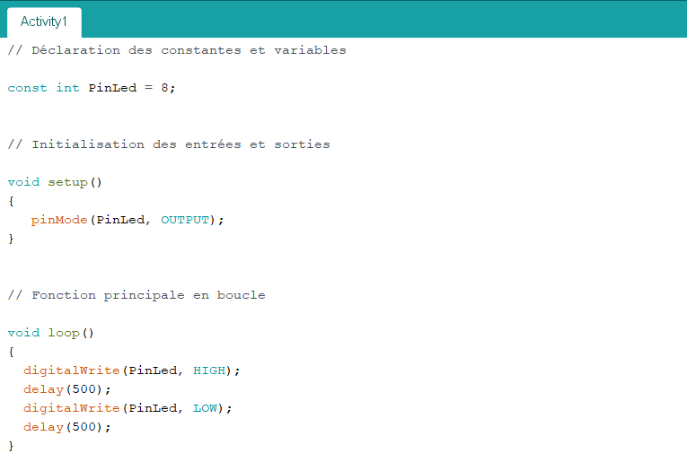 . Programme en langage Arduino (Projet1/Activity1/INO/Activity1.ino”)