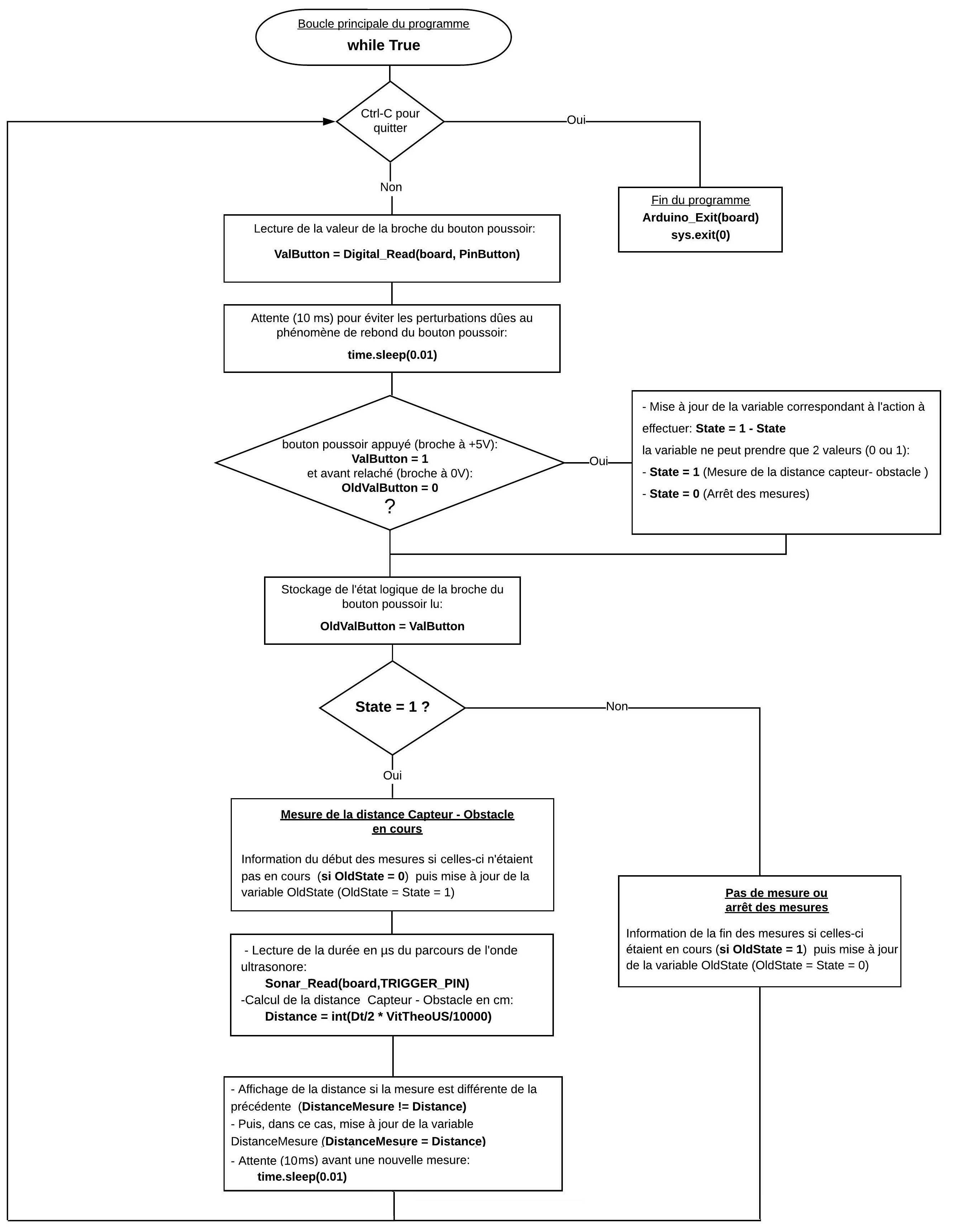 – Boucle principale du programme (boucle ”while True”) :