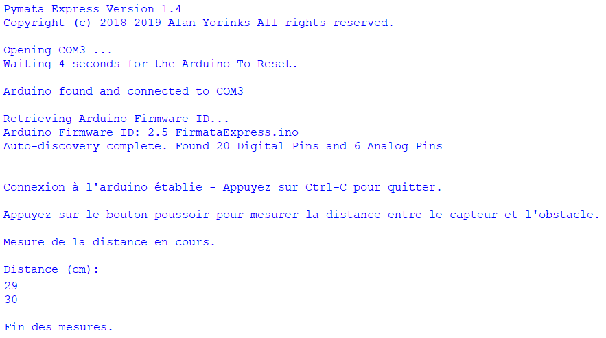 . Si la connexion à l’Arduino est réussie :
