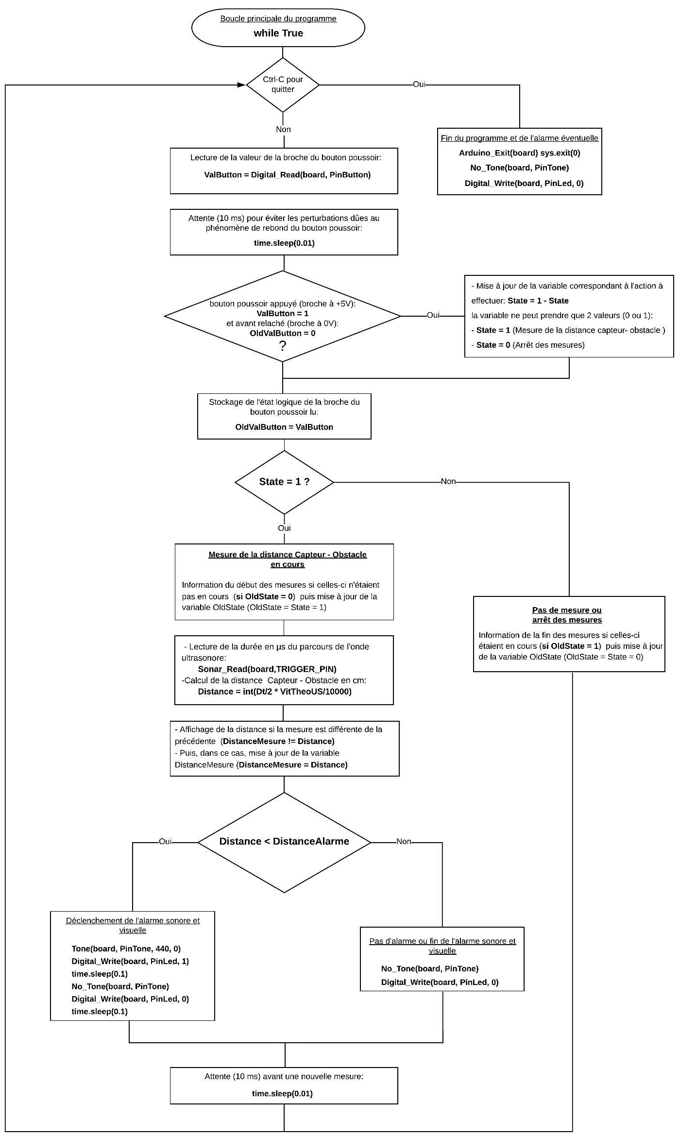 – Boucle principale du programme (boucle ”while True”) :