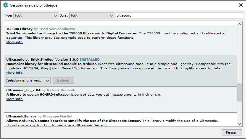 – Entrer ”Ultrasonic” dans la zone de recherche,