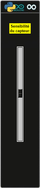 Après avoir cliqué sur le connecteur USB, un menu permettant de régler la sensibilité du capteur est affiché (sauf en mode ”simulation”) et les DELs réelle et virtuelle s’allument.