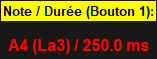 – La note et sa durée sont alors affichées sous l’encadré (redevenu en fond jaune) précédemment sélectionné :