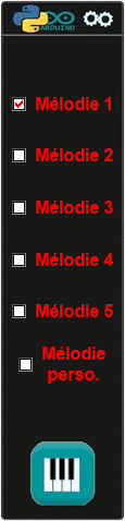 Vous disposez de 5 mélodies préenregistrées et de la possibilité de créer une mélodie personnalisée en cliquant sur le bouton :