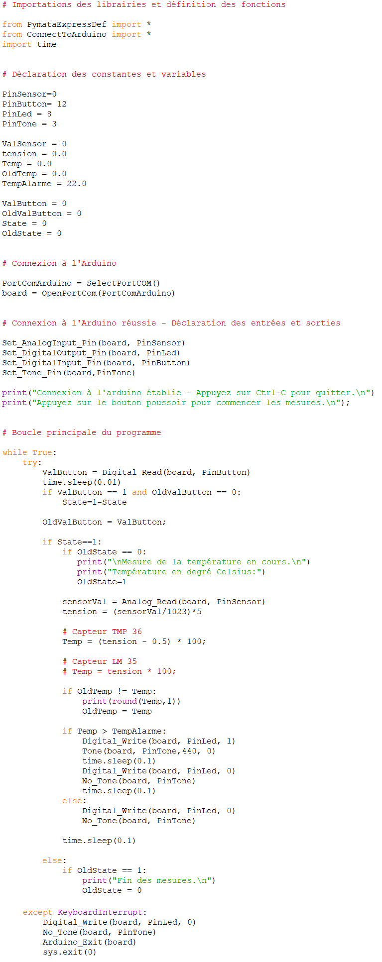 Le code de l’activité en Python ou en langage Arduino pourra être modifié pour voir l’influence des variables (seuil de température, fréquence de l’onde sonore, durée d’émission, durée de silence).