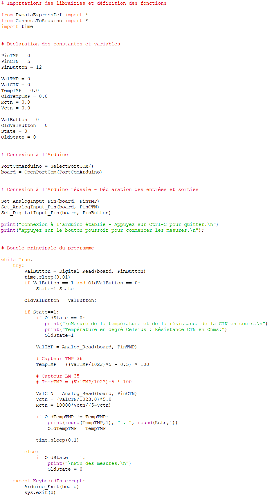 Le code de l’activité en langage Arduino a déjà été étudié dans la partie:
