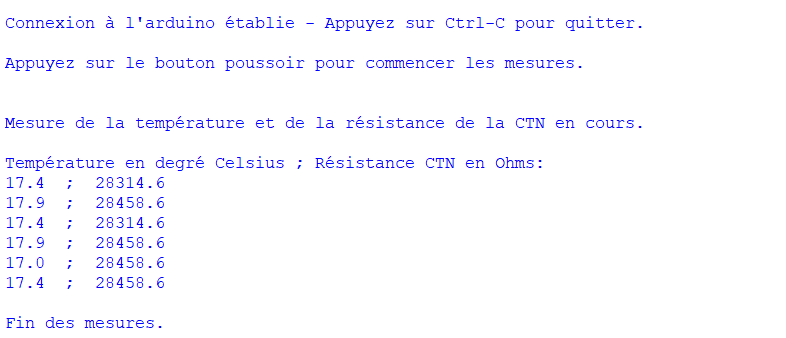 On pourra alors tracer la caractéristique résistance = f(température) qui permettra après de mesurer n’importe quelle température avec cette thermistance grâce à la mesure de sa résistance.
