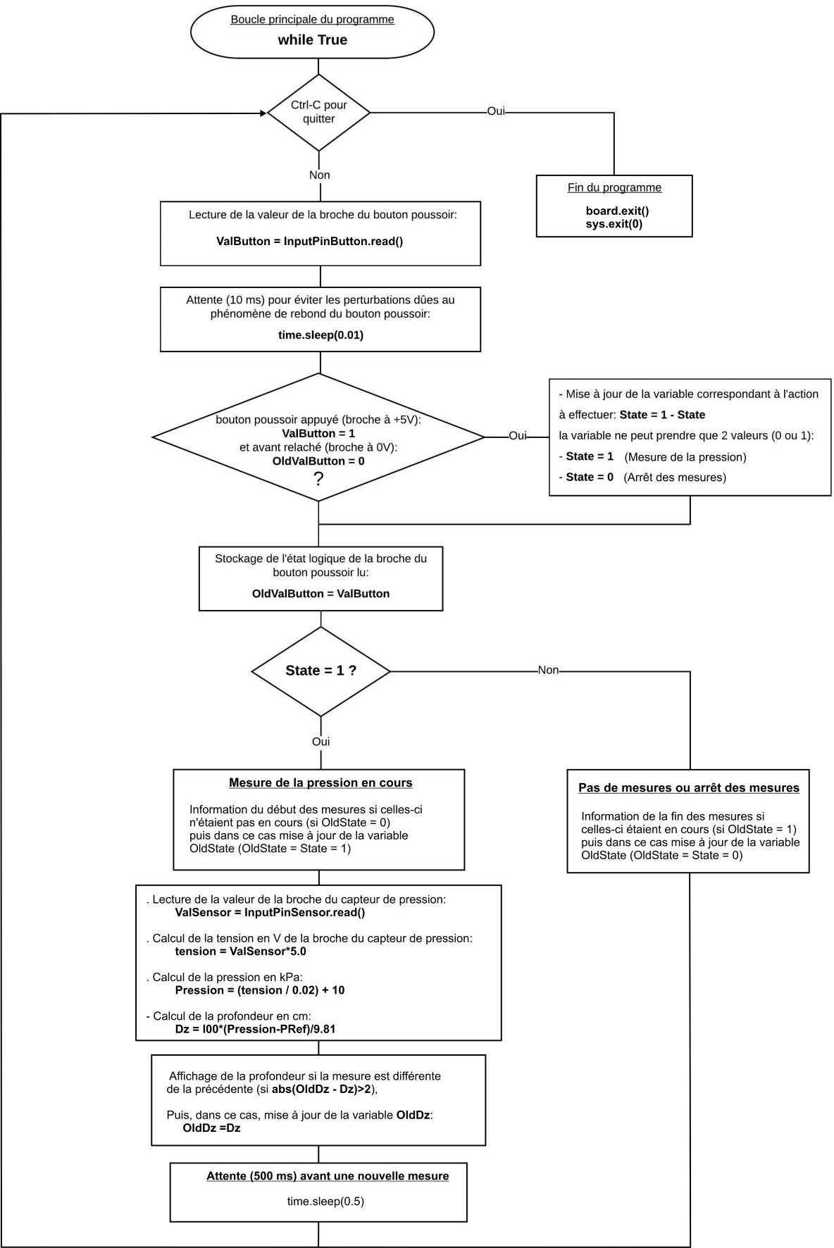 – Boucle principale du programme (boucle ”while True”) :
