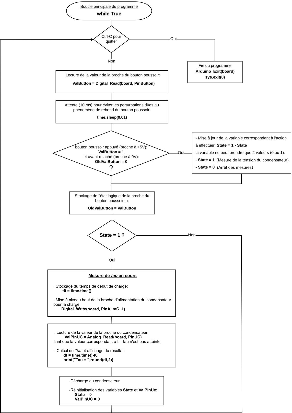 – Boucle principale du programme (boucle ”while True”) :