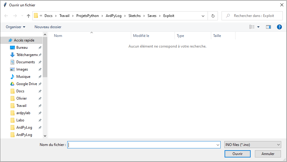 Il suffit alors d’indiquer le chemin du code (fichier avec une extension .ino) à ajouter à la base de données :