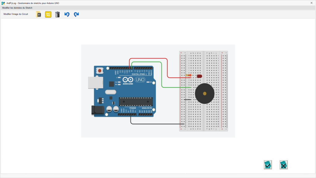 Les modifications de l’image du circuit électronique associé au sketch sélectionné sont validées ou annulées à l’aides des boutons suivants :