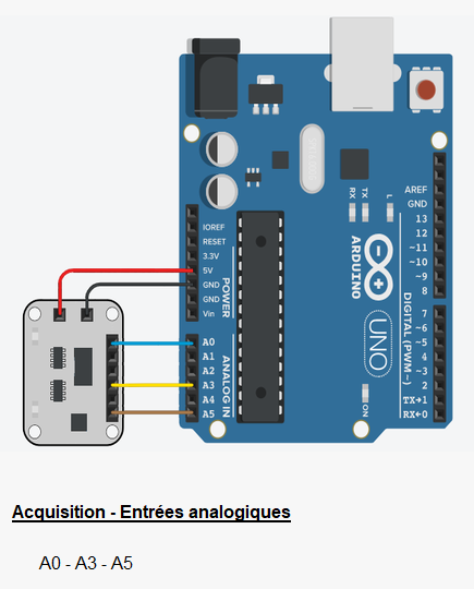 Dans un premier temps, il faut sélectionner les entrées analogiques de l’Arduino Uno pour lesquelles on souhaite suivre l’évolution temporelle des tensions qui leur sont appliquées.