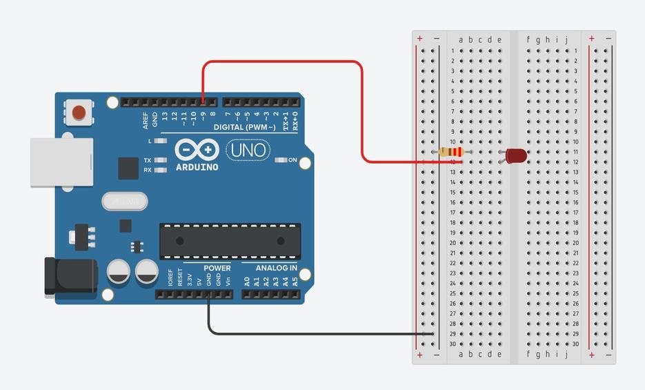 Le sketch permet de faire clignoter une DEL rouge connectée sur la broche 9.