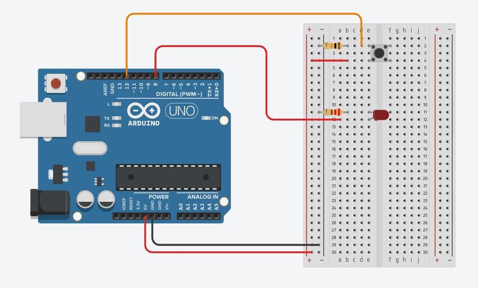 A l’aide de variables permettant de stocker les valeurs (actuelle et précédente) de cet état, l’Arduino pourra savoir quelle action effectuer (allumer ou éteindre la DEL) après l’appui sur le bouton poussoir.