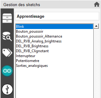 Dans cette catégorie, sont regroupés les sketchs qui permettent l’apprentissage du principe de fonctionnement des entrées et sorties de l’Arduino Uno.