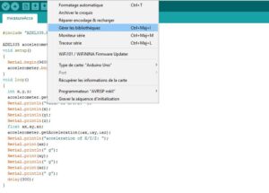 Afin d’ajouter une librairie à l’IDE Arduino, il faut aller dans le menu « Outils ->Gérer les bibliothèques » :